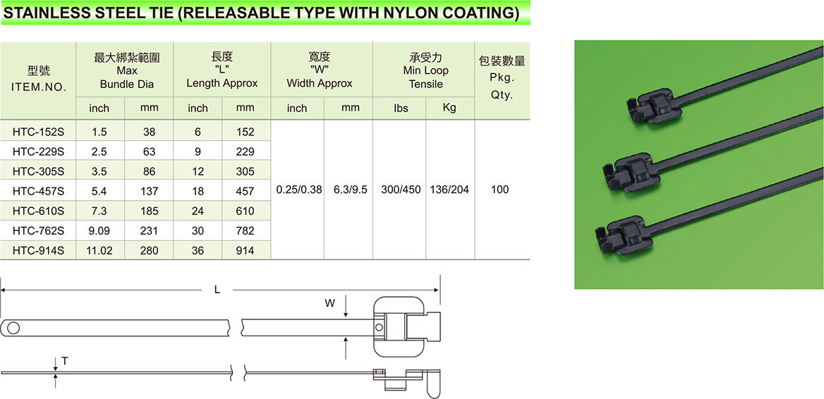 Products WIRE/CABLE STRAP STAINLESS STEEL CABLE TIES STAINLESS STEEL TIE(RELEASABLE TYPE WITH NYLON COATING)