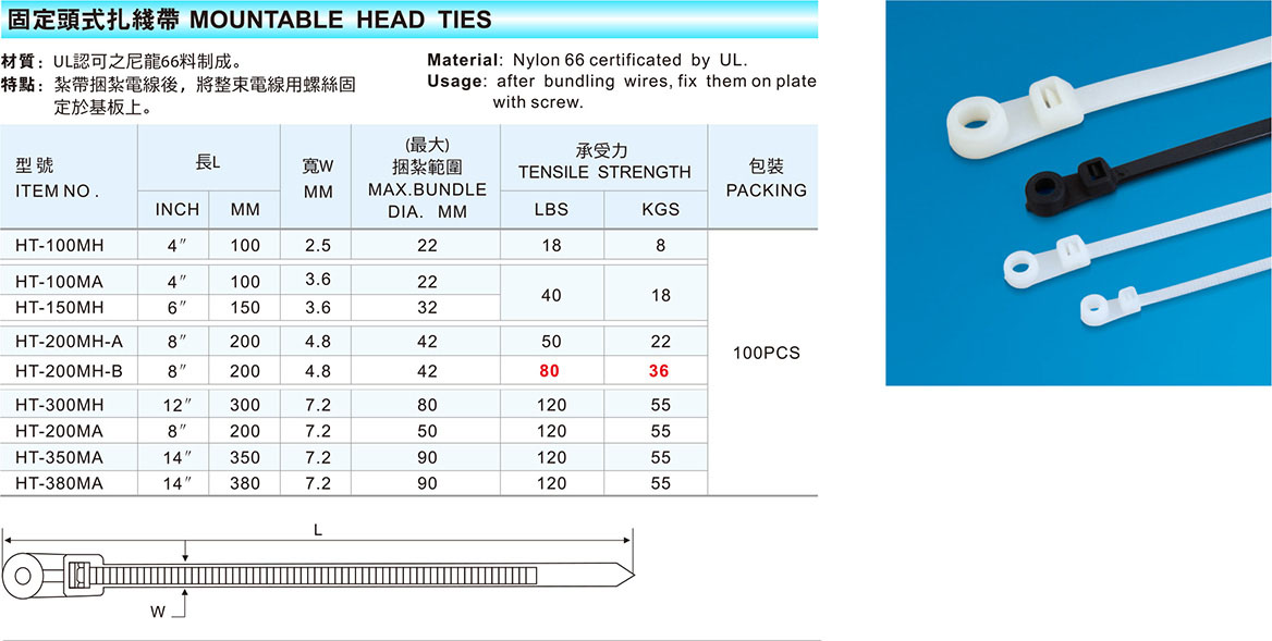 产品中心 尼龙扎带系列 固定头式扎线带