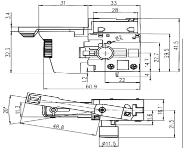 产品中心 开关类 HT1010 防尘交流扳机调速开关 17 防尘交流扳机调速开关