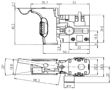 产品中心 开关类 HT1010 防尘交流扳机调速开关 53 防尘交流扳机调速开关