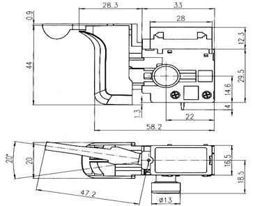 产品中心 开关类 HT1010 防尘交流扳机调速开关 66 防尘交流扳机调速开关